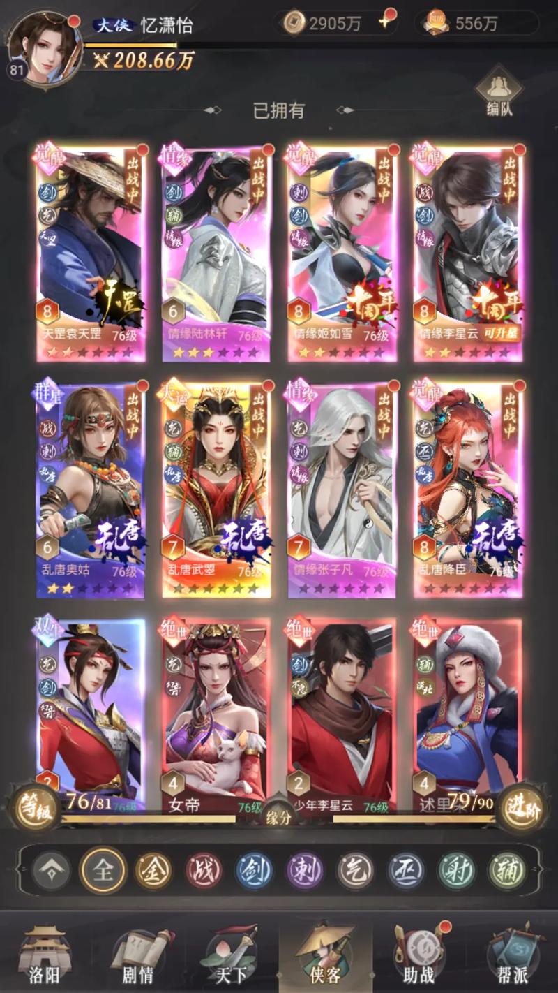 - **主帅**:作为队伍核心兼顾局势把控与伤害输出,优先挑选高攻高防的角色,比如李星云。