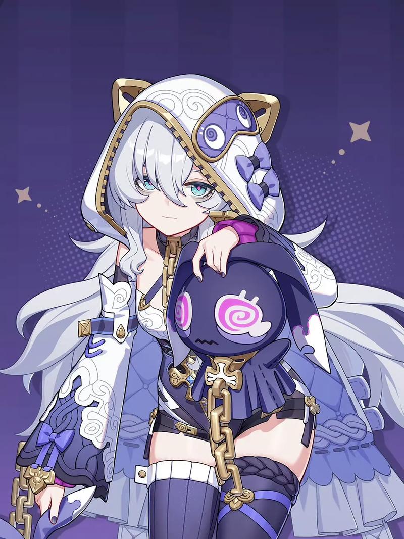 月下猫:这是琪亚娜在游乐园大舞台打工时身着的特摄服。外形设计感十足,既有帅气的大型尾翼和装甲,还搭配了可爱的猫尾巴与猫耳样式的头饰。特效方面没有太多表现,整体是走清新可爱路线的一款皮肤。