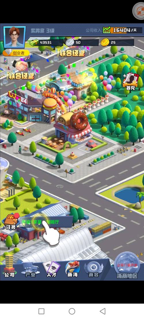 这是一款以现代都市为舞台的模拟经营游戏,玩家将以创业者的身份开启征程,从运营公司、拓展商业版图起步,一步步成长为执掌商业帝国的掌舵人。其中城市发展系统作为核心玩法之一,为玩家提供了充足的发展空间与多元策略选择。