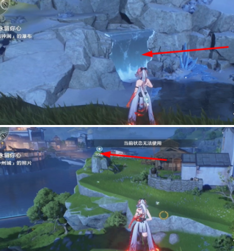 4、传送到瑝珑 - 中曲台地,在石头上进行拍照。