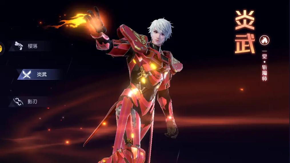 炎武(斩魔师):手持分子刀,是近战型选手,攻速快连招密,能打能扛,对新手特别友好。