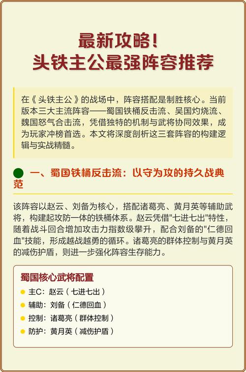 蜀国爆发流阵容:关羽+张飞+诸葛亮。关羽和张飞是蜀国核心输出,拥有超强爆发能力,诸葛亮能提供控制与辅助效果,进一步放大队伍的输出上限。