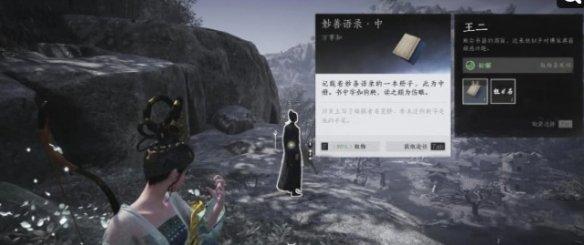 3、妙善语录·中位于NPC王二身上,需要使用奇术摄星拿月偷出来。