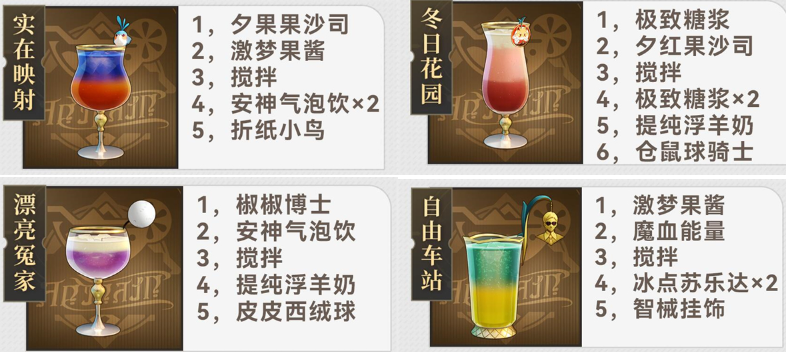 为大家推荐:崩坏星穹铁道杯中逸事定制调酒配方是什么-2.1杯中逸事调酒配方大全