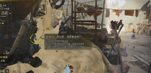从区域16绿洲营地出发,前往西北方向的峭壁,即可找到此营地。