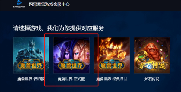 在支持页面中,选择 “魔兽世界” 的正式服。