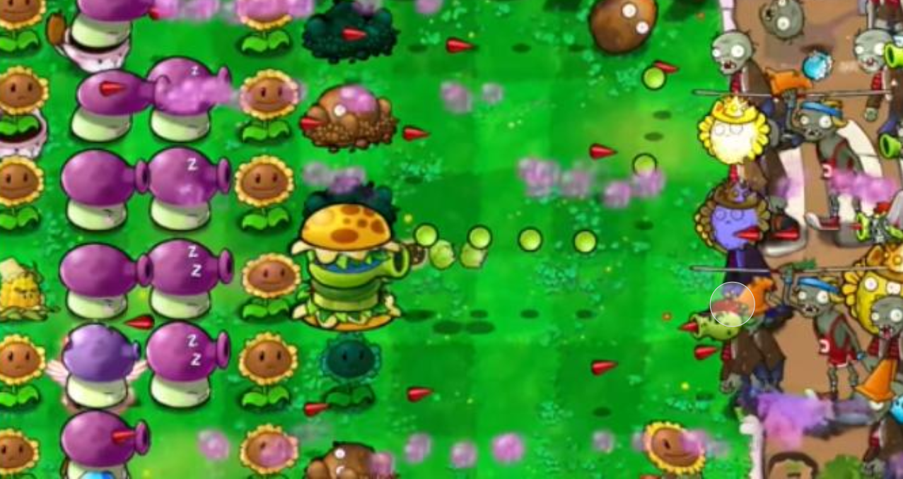 确保防线已经完成后,持续用大喷菇和坚果保龄球进行防守。最终,你可以依靠这些植物的配合顺利通过关卡。