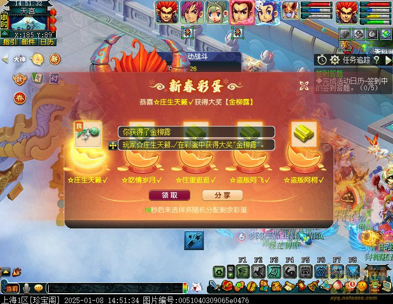 在环任务的过程中,还有可能获得全队的春节彩蛋哦~