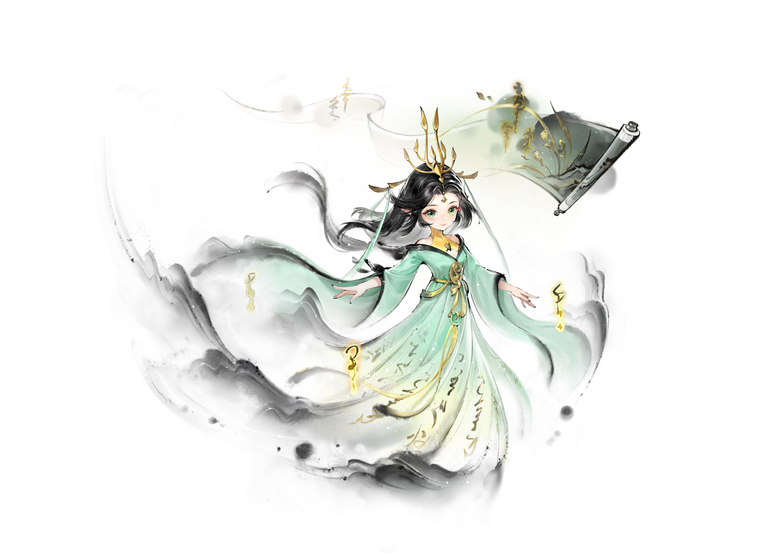 宝卷孕育出的画仙,是画中瑶池仙山的山影所化。画仙喜静、爱好诗文,气质清冷恬然,有隐士之风。