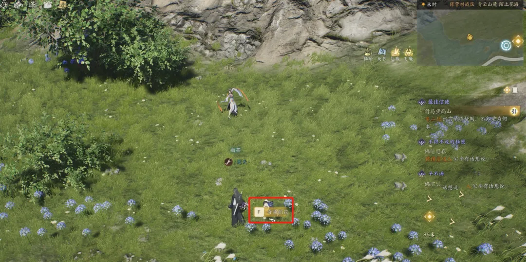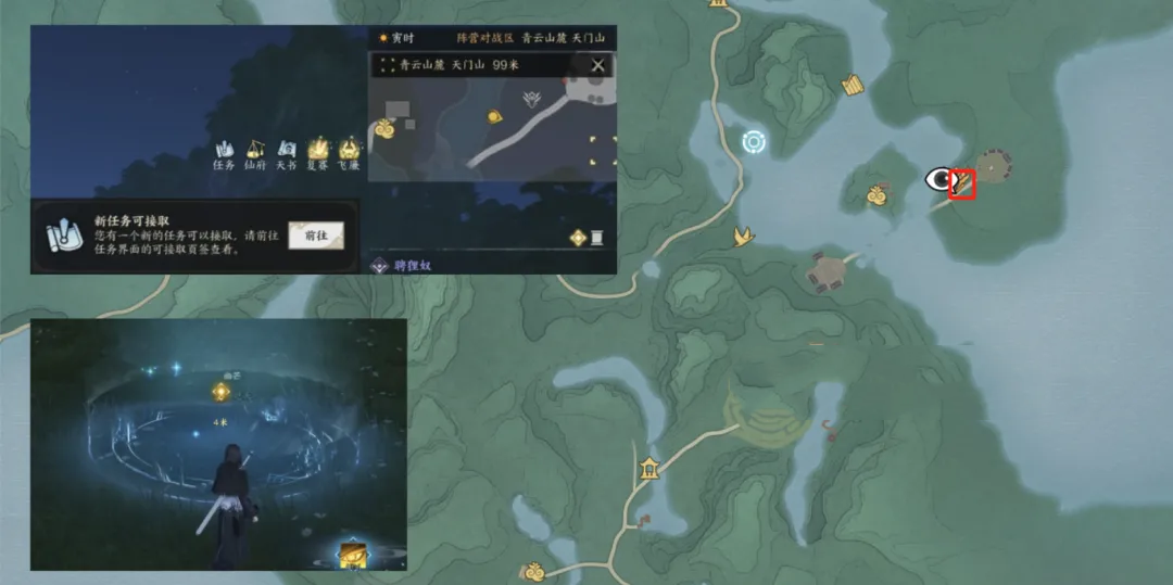 ⑤青云山麓标注区域触发,接取后来到引导的篮圈内进入任务地图。