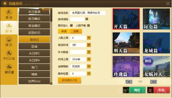 刑天篇的房间创建位于副本-创世纪类目下的刑天篇。可选择普通及困难两种模式,玩家根据需求自行选择即可。