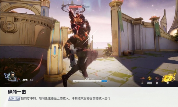 朝前方冲刺,期间抓住路径上的敌人,冲刺结束后将面前的敌人击飞。