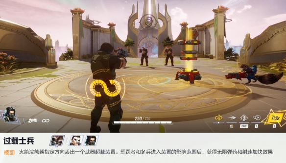 可以通过火箭浣熊的武器超载装置,获得无限弹药和射速加快的效果。