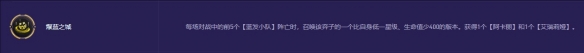 获得1000生命值、50护甲、和50魔抗。该弈子无法移动或被晕眩,并且会将其目标拉入攻击距离内。