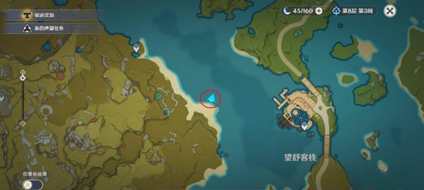 5、第三个钓鱼点位于璃月望舒客栈左边的海岸边。