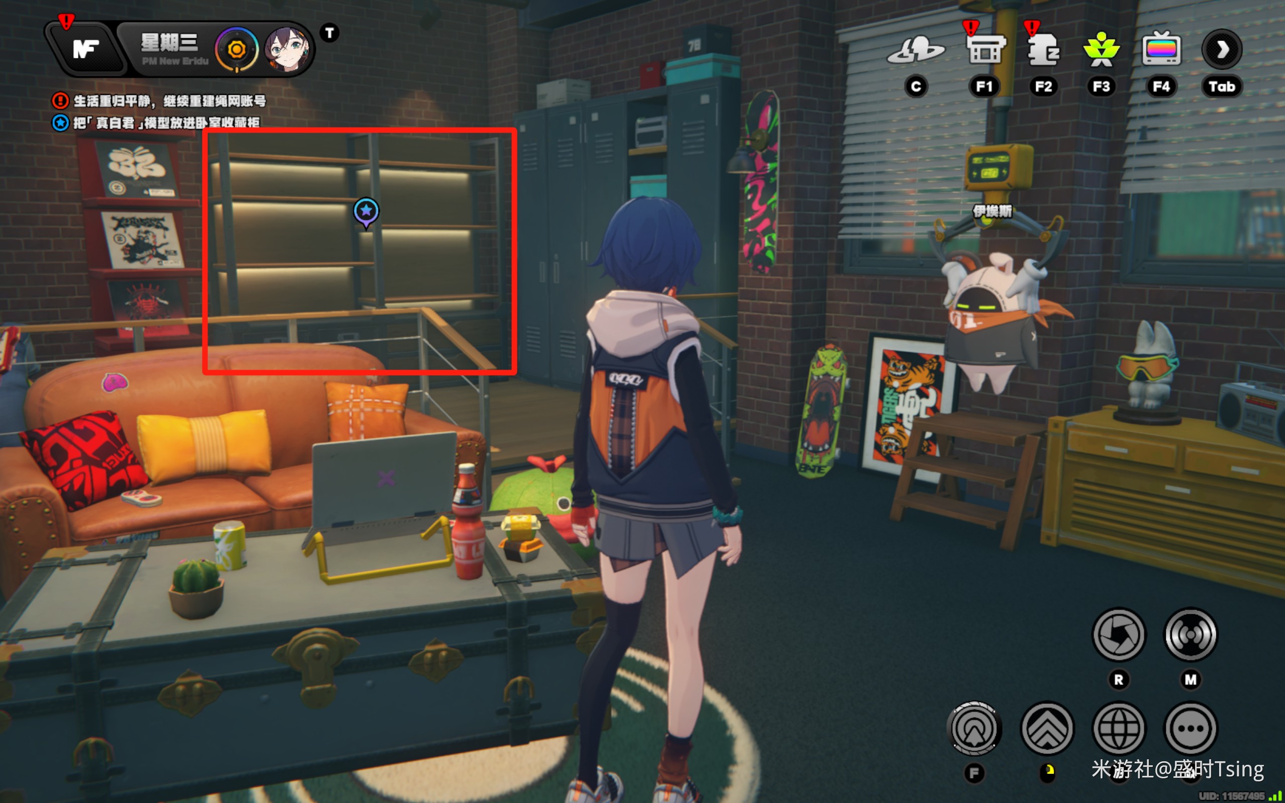 传送到Random Play-柜台,与格莉丝对话后前往房间装饰收藏柜: