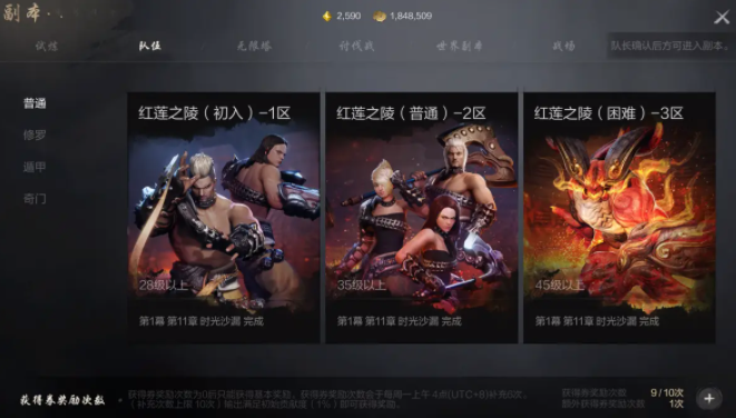 需要玩家注意的是,前期如果想要挑战副本,那最好是联合其他成员,一起组队去挑战红莲之陵里面的初入1区,这是一个普通副本,难度相对来说比较低一些,非常适合新手玩家挑战,另外在这个副本里还有普通二区和困难三区,每一个区的难度都不一样,获得的装备也会不同,可以先挑战一区,如果感觉没有太大难度的话,就可以尝试更高难度的二区和三区。