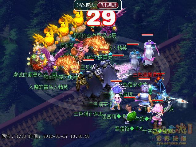3、本层防御最低的玩家可以不防御,对面也就1个巴蛇威胁不大。因为场上有耐卡精神集中宝宝,所以宝宝可以随意输出。对面虽然3个藤蔓妖花就算人物全被封了也无所谓
