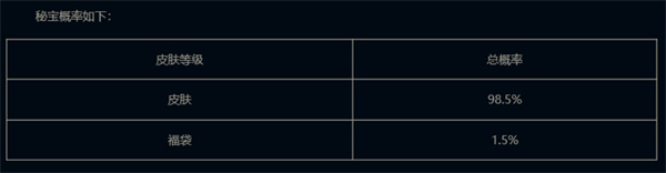 开启秘宝时有几率掉落“福袋”,其中包含一款未解锁皮肤。