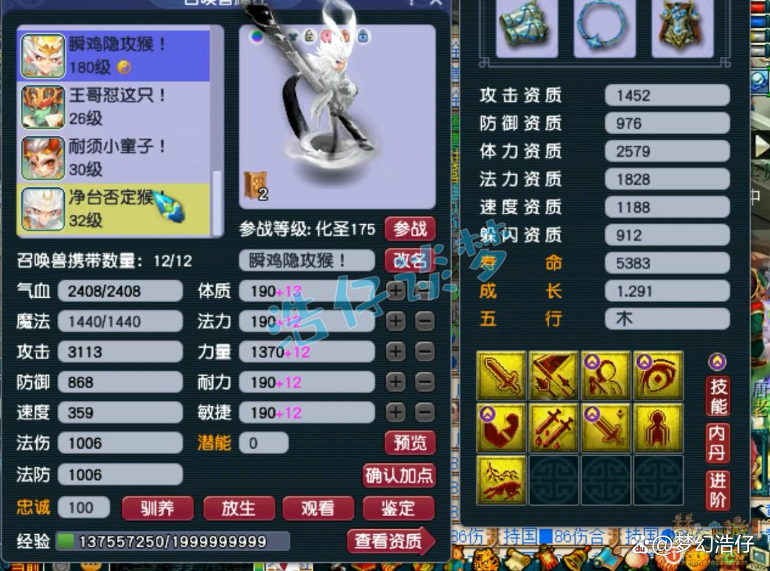 9技能全力隐攻自在心猿,这只也是一只4赐福的宝宝,资质稍微有一点欠缺。