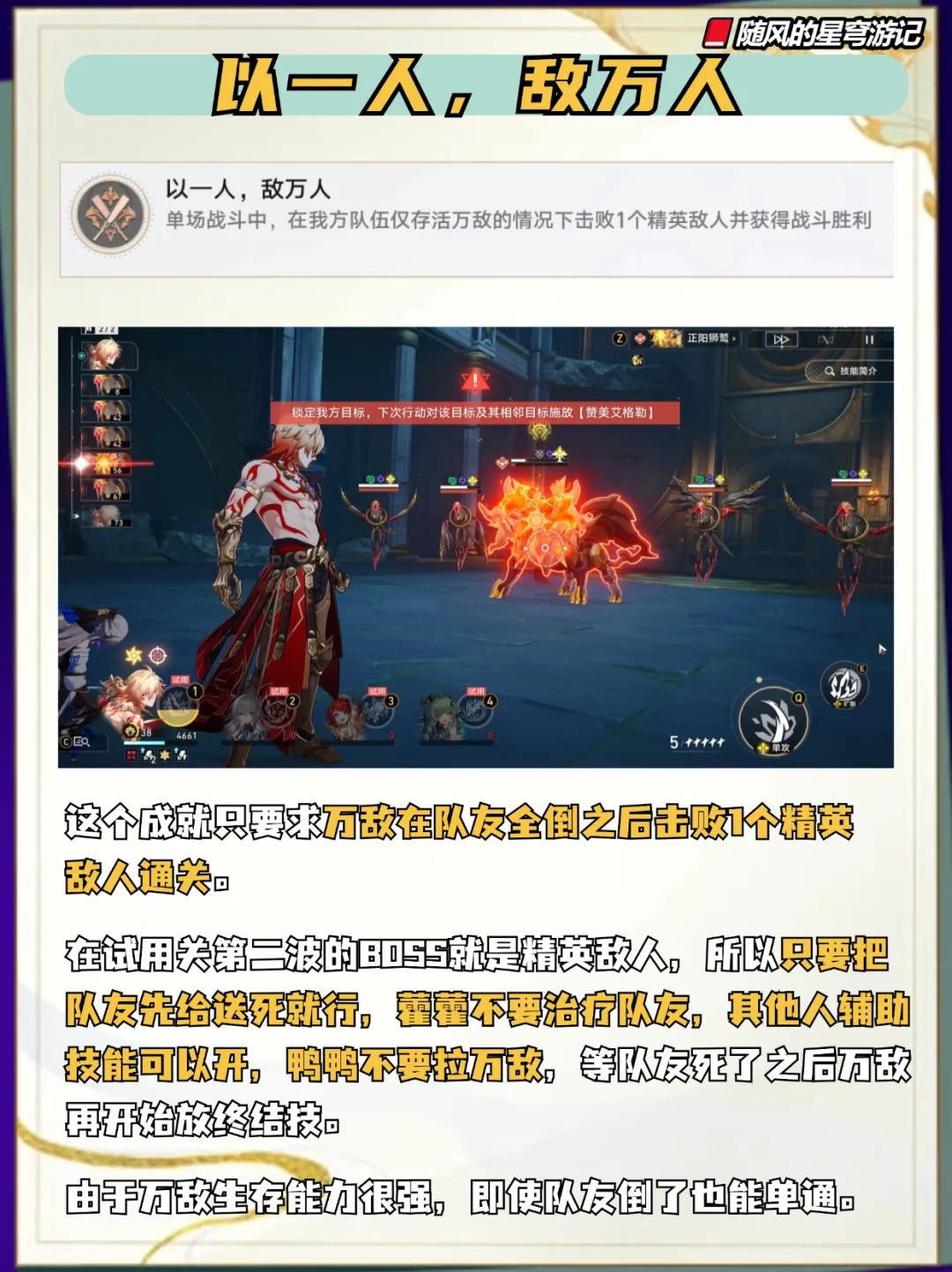 大家早上中午晚上好,我是随风。今天给大家带来的是万敌2个专属成就,都在试用关可以拿下,途径都在笔记里啦,只要注意一下条件很轻松就能拿下。