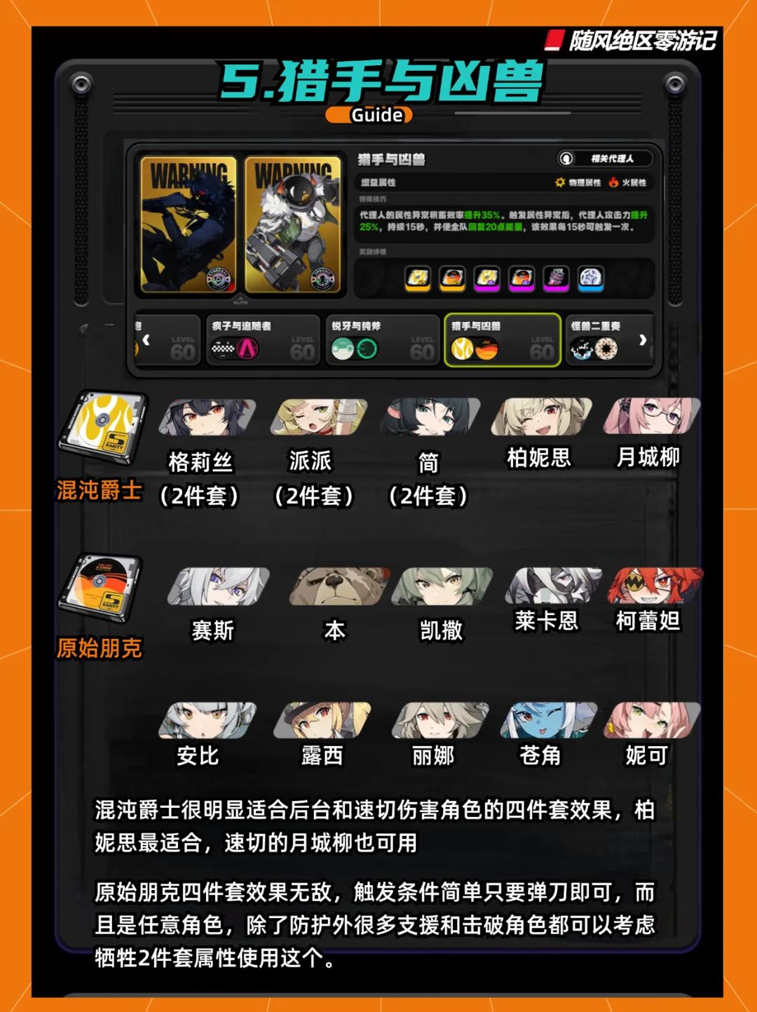 推荐度NO.3 猎人与忠犬 浅羽悠真、月城柳、青衣等角色在这个本都能刷到四件套,电队及其他击破都可以刷