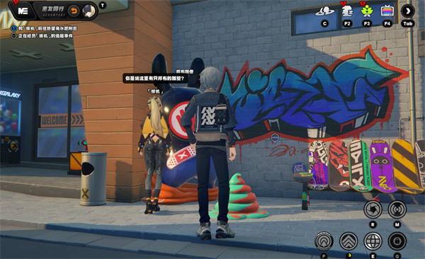 传送至咖啡店节点,进入对面巷道的猛虎涂鸦区域,定位附近金属容器