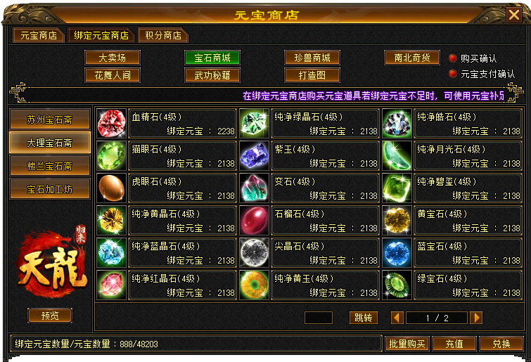 成长加速:绑定元宝直购宝石 战力提升无阻碍