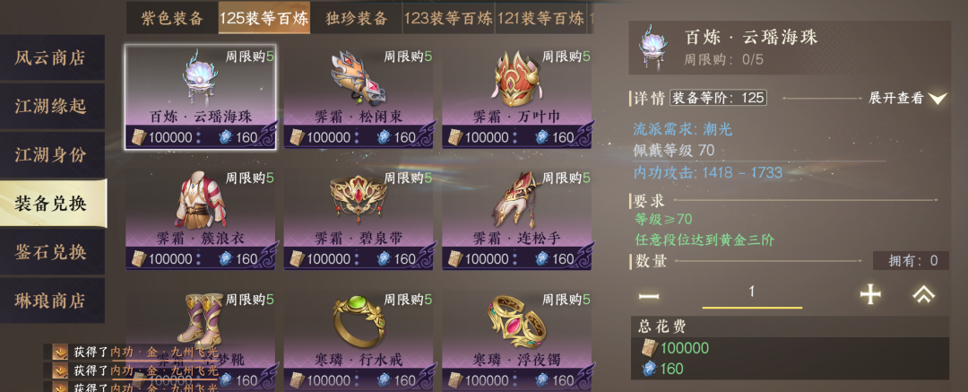 - 装备商店新增125品级百炼装备兑换,扬威商店同步上架橙戒碎片与竞技独珍装备