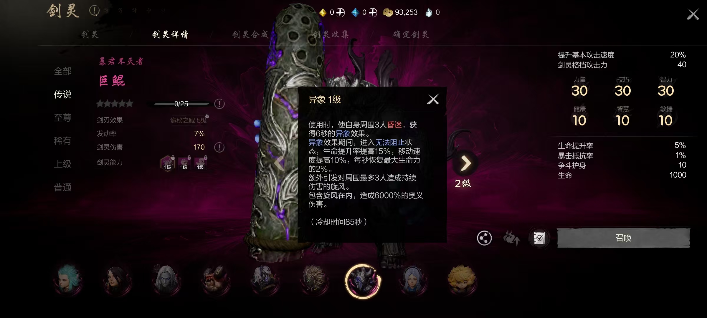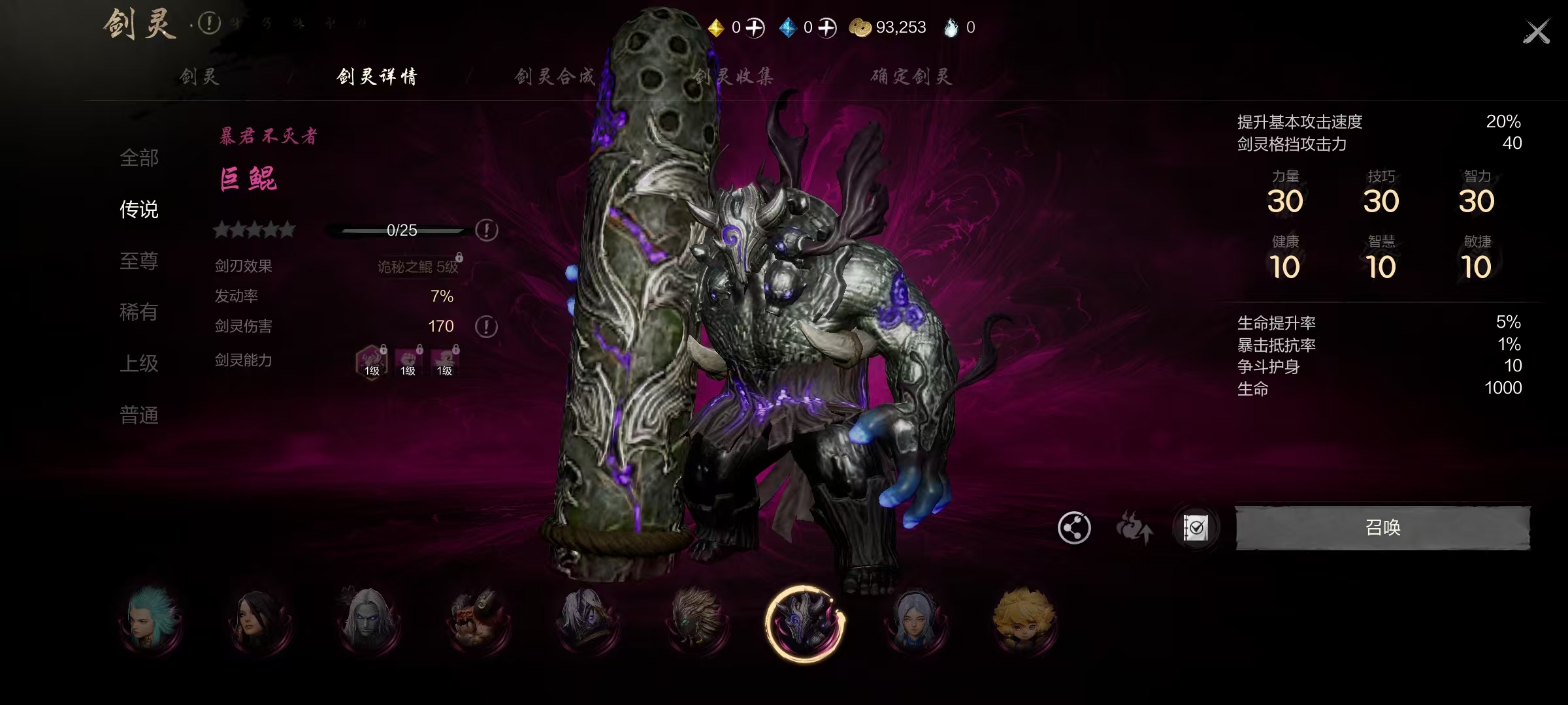 在剑灵2的职业体系中,合理配置高阶剑灵是提升战力的关键。作为传说品质的顶级存在,巨鲲凭借其独特机制成为众多玩家追求的战术核心。本文将深入解析暴君不灭者巨鲲的实战价值与培养方向。