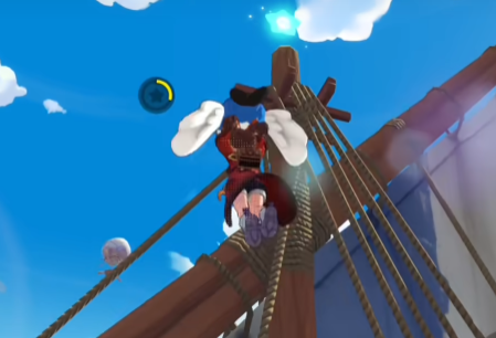 第六枚星辉·魔法码头帆影寻踪重返魔法师之家传送点,沿西南方向岩石群飞行至小型码头。登船后沿主帆攀爬系统抵达瞭望台,该处设有明显发光标记。