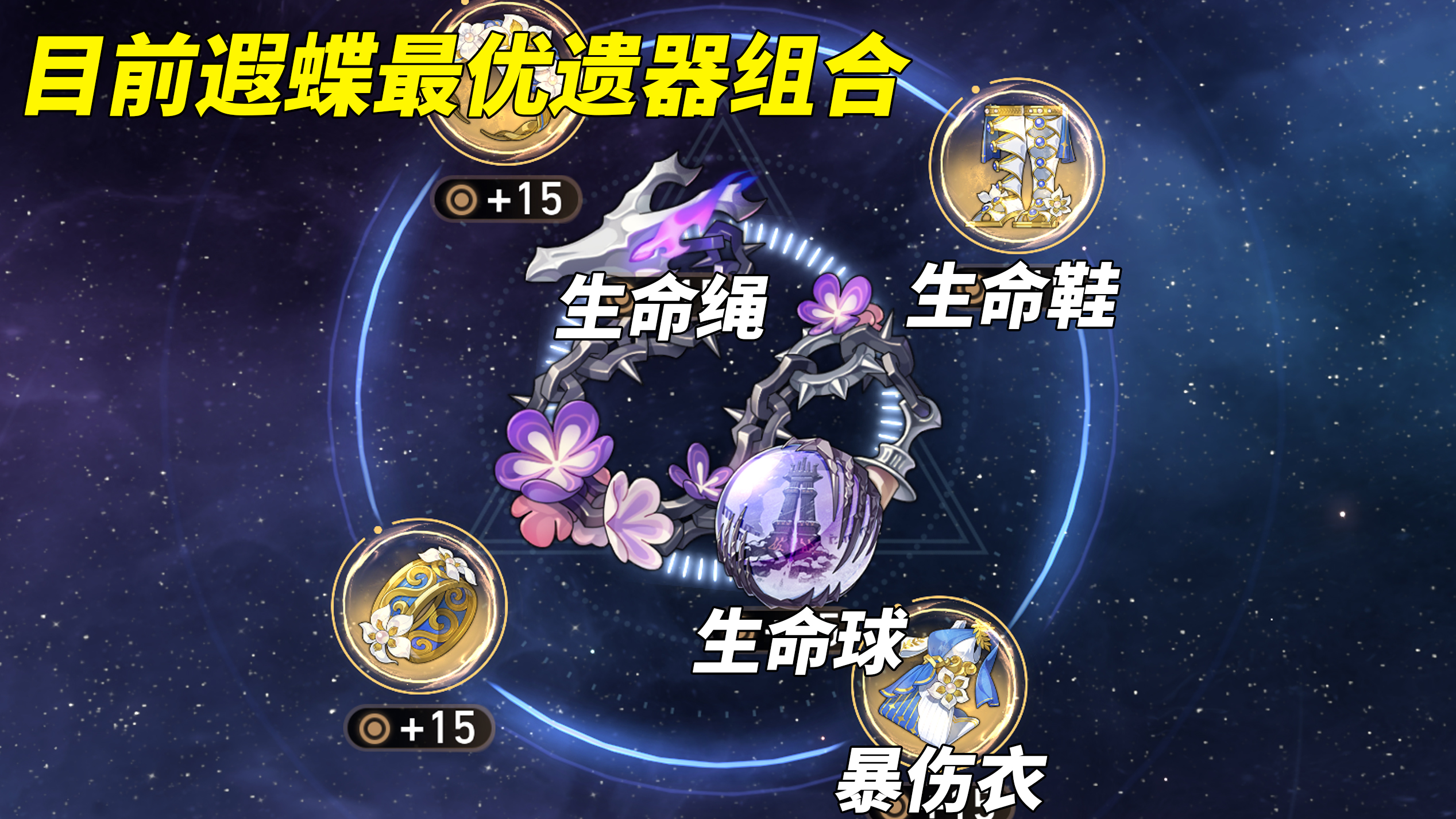 遗器配置推荐哀歌覆国诗人四件套,主词条选择生命鞋、量子球与生命绳,充分放大生命值转化机制的优势。副词条优先选择暴击、爆伤与速度属性。