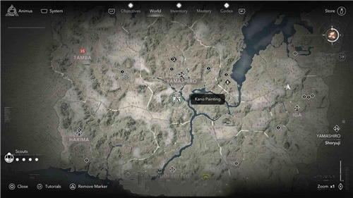在主线剧情解锁山城区域后,玩家就会自动接取艺术收藏家支线任务啦。要完成这个支线任务,得集齐七幅狩野派画作,这些珍贵的艺术品散落在不同的城池里。当角色靠近画作时,地图上会显示白色卷轴图标作为提示哦。