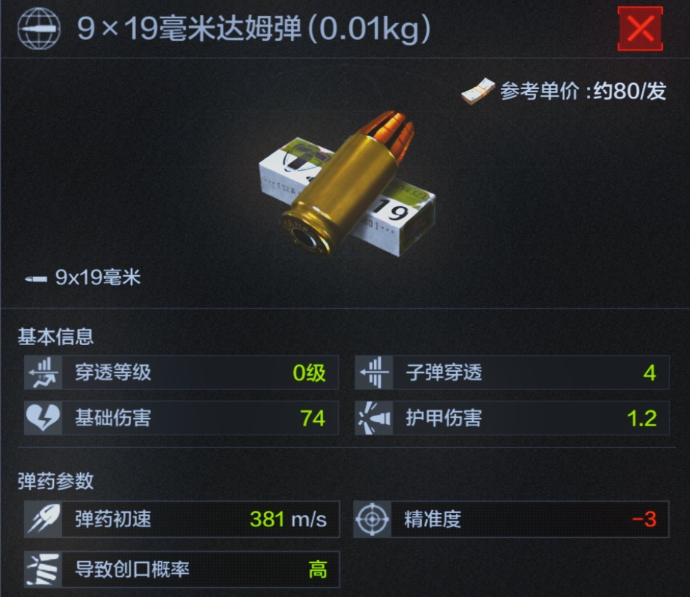 这是3级弹药,挺适合在普通封锁区作战的,穿透力处于中等水平。