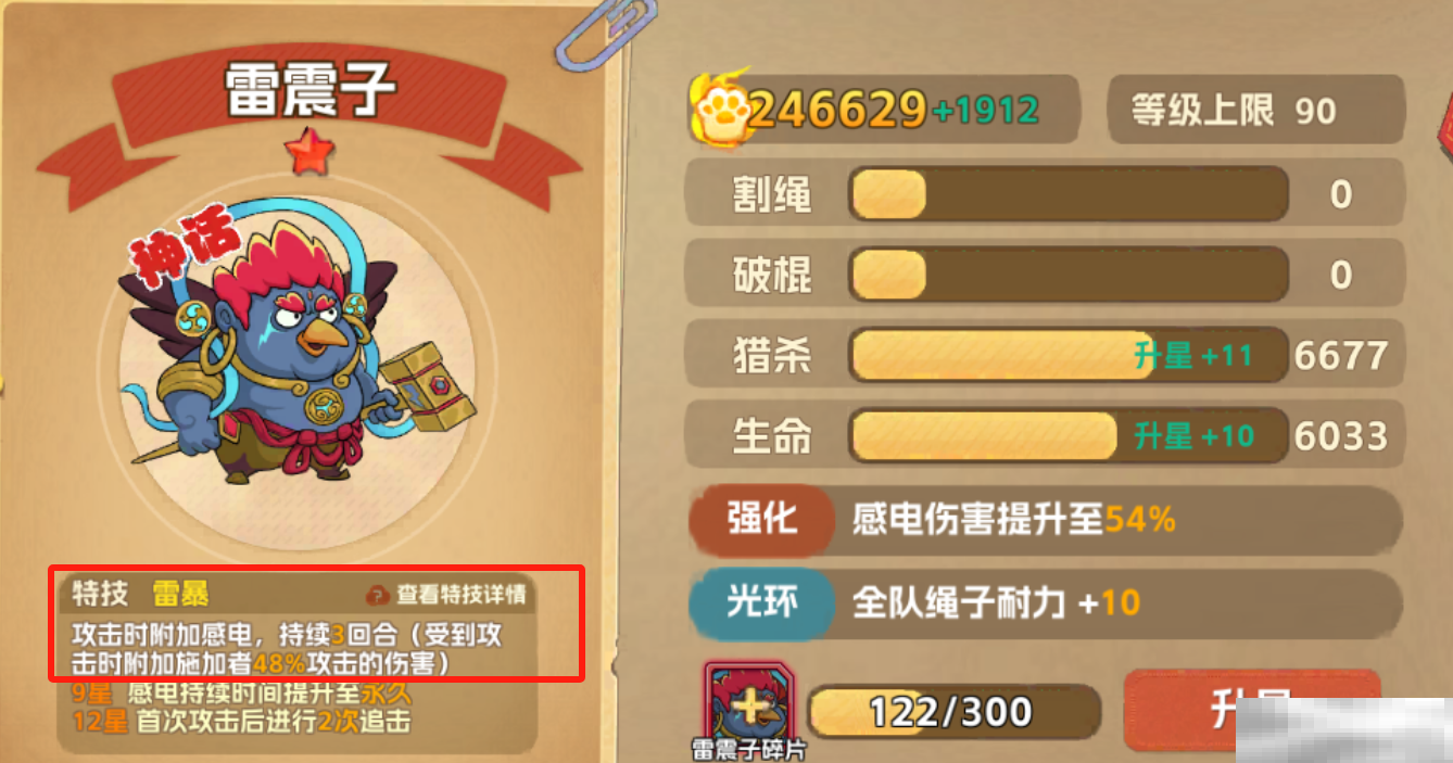 施展这个技能后,会给目标附加一个持续3回合的导电标记。带有标记的单位每次受到伤害时,都会额外触发基于雷震子48%攻击力的真实伤害。而且这个效果对有护盾加成的单位还具有穿透特性哦。