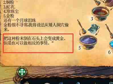 5. 制作完成的这蓝色粉末啊,就是关键道具金粉啦,它还有个特殊效果,能把普通石块点化成黄金呢。