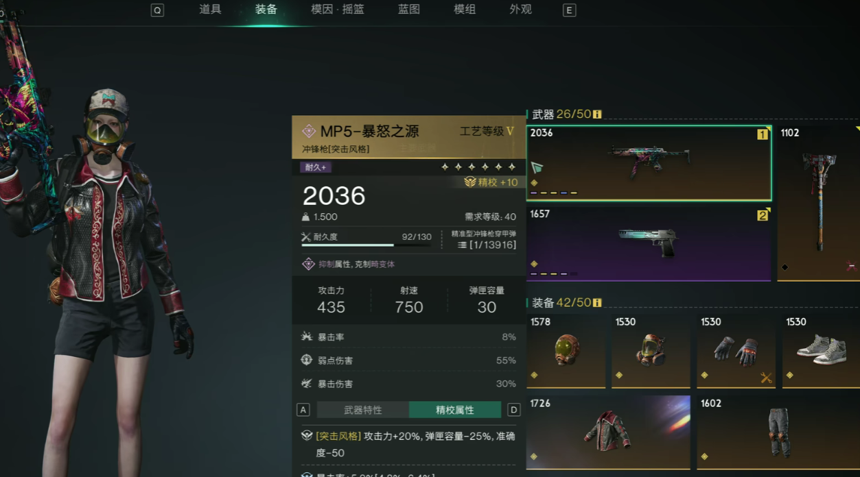 暴怒之源的基础攻击数值为435点,射速高达750点,弹匣容量为三十点,暴击率为8%,针对弱点的伤害为55%,暴击伤害是30%,附带有的精准属性为突击风格,可以增加基础攻击倍率20%,弹匣容量会减少25%,并且同时降低精准度,但对于冲锋枪而言,精准度的要求并不高。