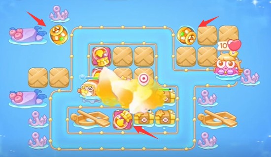 在地图左下角增建穿透火箭和回旋镖的组合,清除最后的水草障碍,这样就能完成全图探索啦。