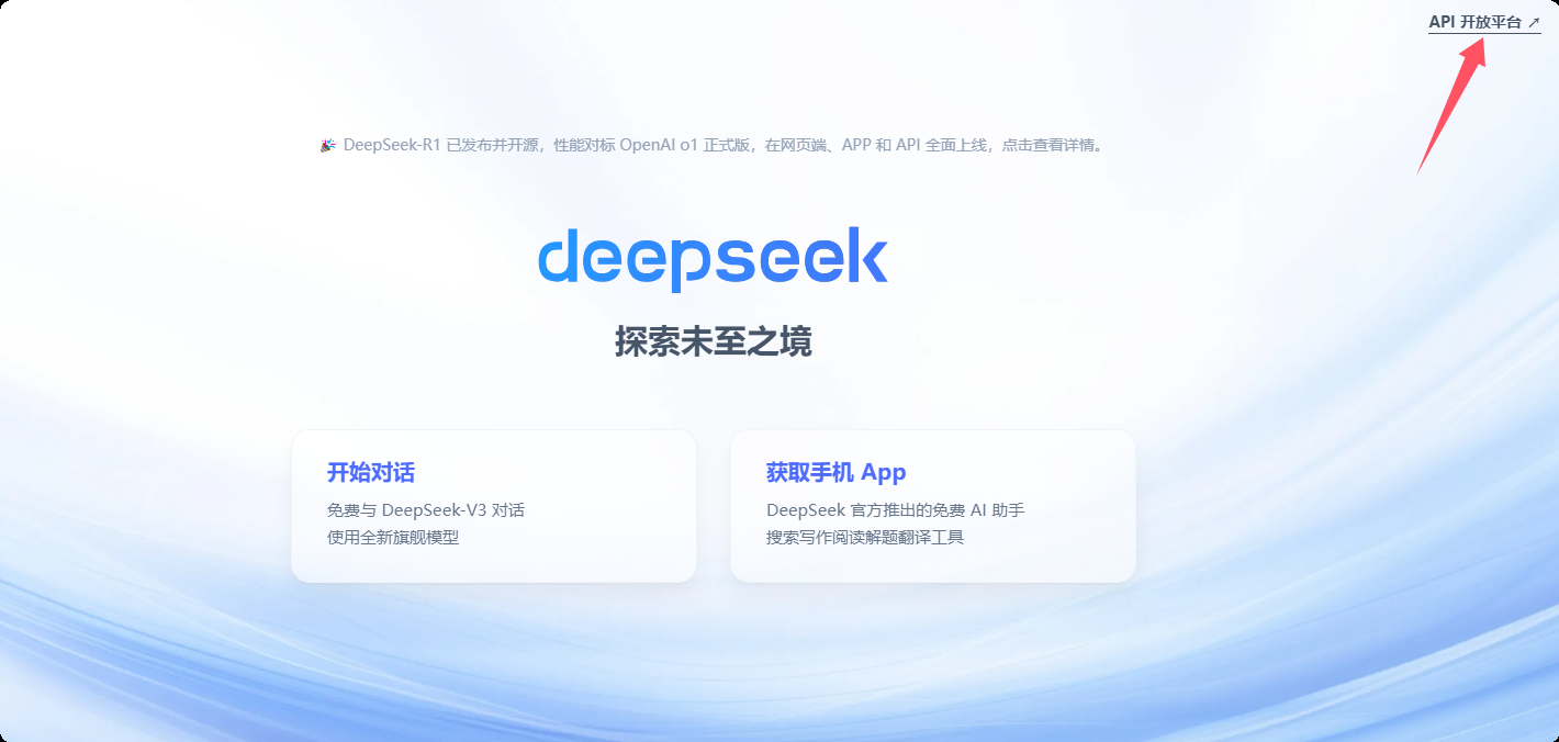 1. 登录DeepSeek官网平台,在页面右上角找到「开放平台」入口