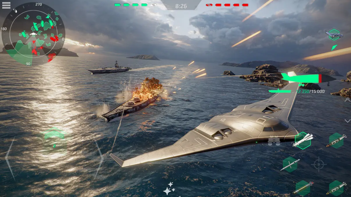 光辉高速突防型:双发引擎让它拥有1.8马赫的极速,简直就是撕开防线的一把利器。建议给它配置燃烧穿甲弹链,然后针对敌方驱逐舰的弹药库进行俯冲攻击。要注意俯冲角度得控制在70 - 80度之间,这样能有效躲开近防炮的火力网。
