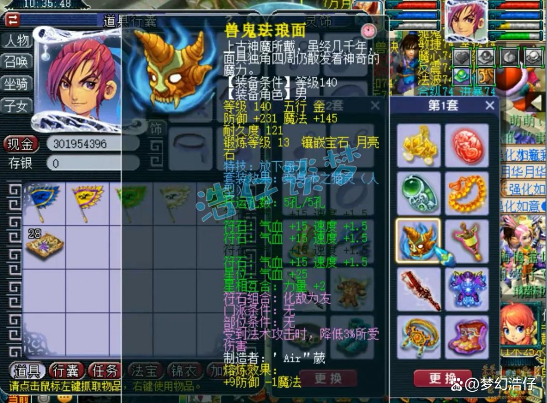 鞋子选的是140级带有笑里藏刀特技的,配上12级黑宝石,能确保速度优势。