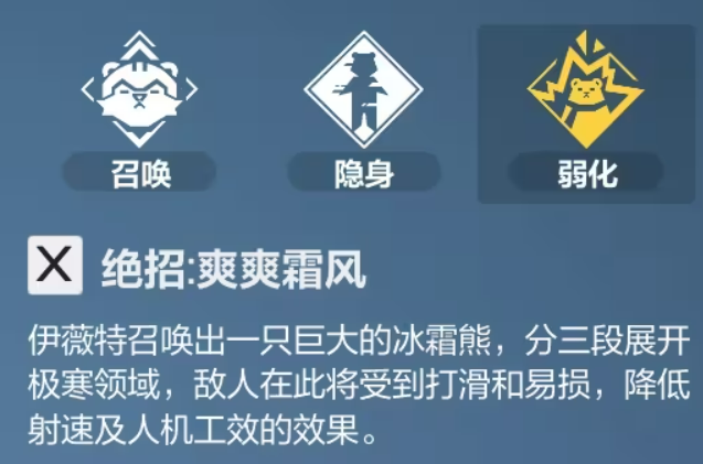 伊薇特则是欧泊阵营的控场专家,善于利用冰雪环境压制敌人行动。她的被动技能“皑皑藏雪”让她在静止不动时进入隐身状态,距离20米外的敌人完全无法发现她。这让她可以伺机而动,为队伍创造战机。她的主动技能“熊熊出击”能召唤战术熊,这只熊既能冲撞敌人,也能在战场上制造大范围的冰面,触碰冰面的敌人会进入“易损”状态,承受更多伤害。她的绝招“爽爽霜风”则可以在大范围内展开极寒领域,对敌人造成减速、降低射速和增加受伤效果的多重打击,是压制敌人进攻的绝佳选择。