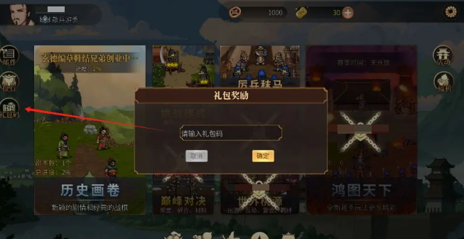 1. 先完成剧情模式中历史画卷的第二章节,然后保存当前的进度,再返回大厅界面。