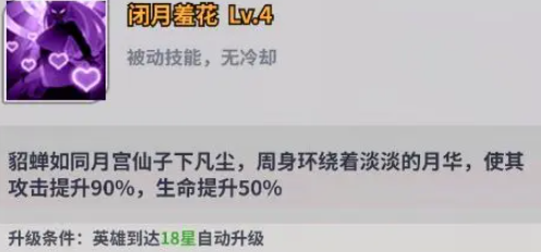 貂蝉这个角色有着能为敌方群体附加,暗属性英雄独有的诅咒效果,能叠加出非常高的输出值,此外她的主动技还能清除自身负面和敌方的增益,在面对主动增益堆叠伤害的队伍时,会有亮眼的表现。
