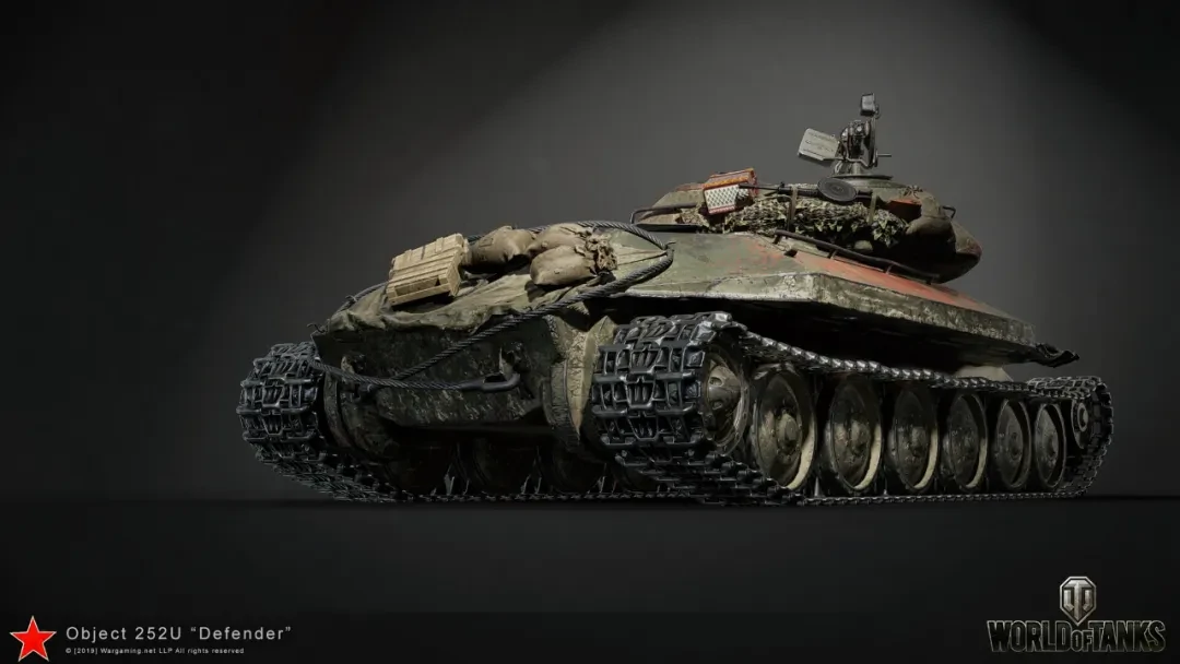在当前的游戏库中,有两种252工程U型载具。基础版支持自定义涂装,而特殊版「防卫者」则搭载了不可更改的3D风格。这两辆车的作战参数完全一样,主要的差异就体现在炮管铭文“Враг не пройдёт”(敌方禁行标识)上。这个涂装版本并没有在常规的销售渠道开放,目前持有该版本的账号都是通过特殊渠道获取的。